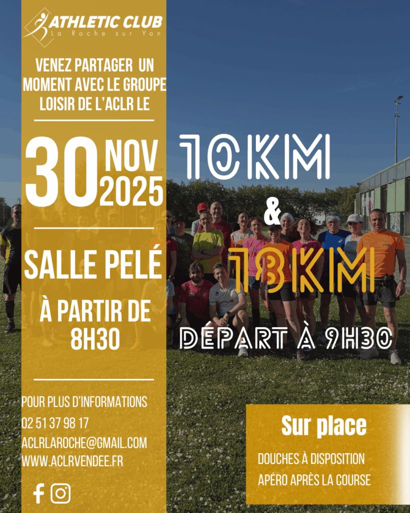 La sortie running loisirs du 30 novembre 2025 à La Roche-sur-Yon est un rendez-vous sportif et convivial ouvert à tous.
